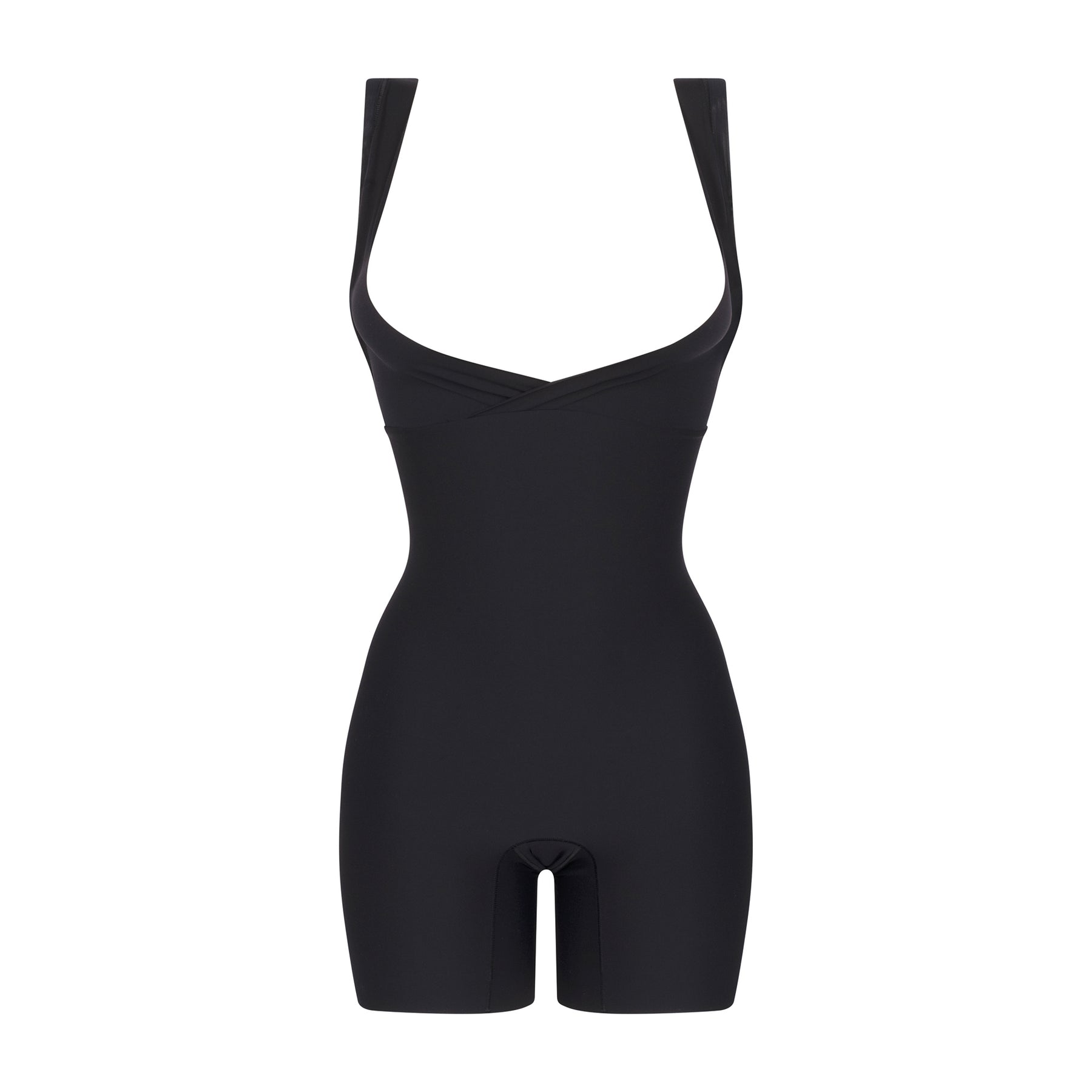 The Eclipse mid-thigh bodysuit combines innovation and elegance, smoothly redefining your curves. The body-shaping cut smooths the stomach, cinches the waist and sculpts the thighs, while offering exceptional comfort thanks to the innovative Lycra® Beauty material. It is invisible under clothing, enveloping the body like a second skin, and adapts to any bra, thanks to the open bust.