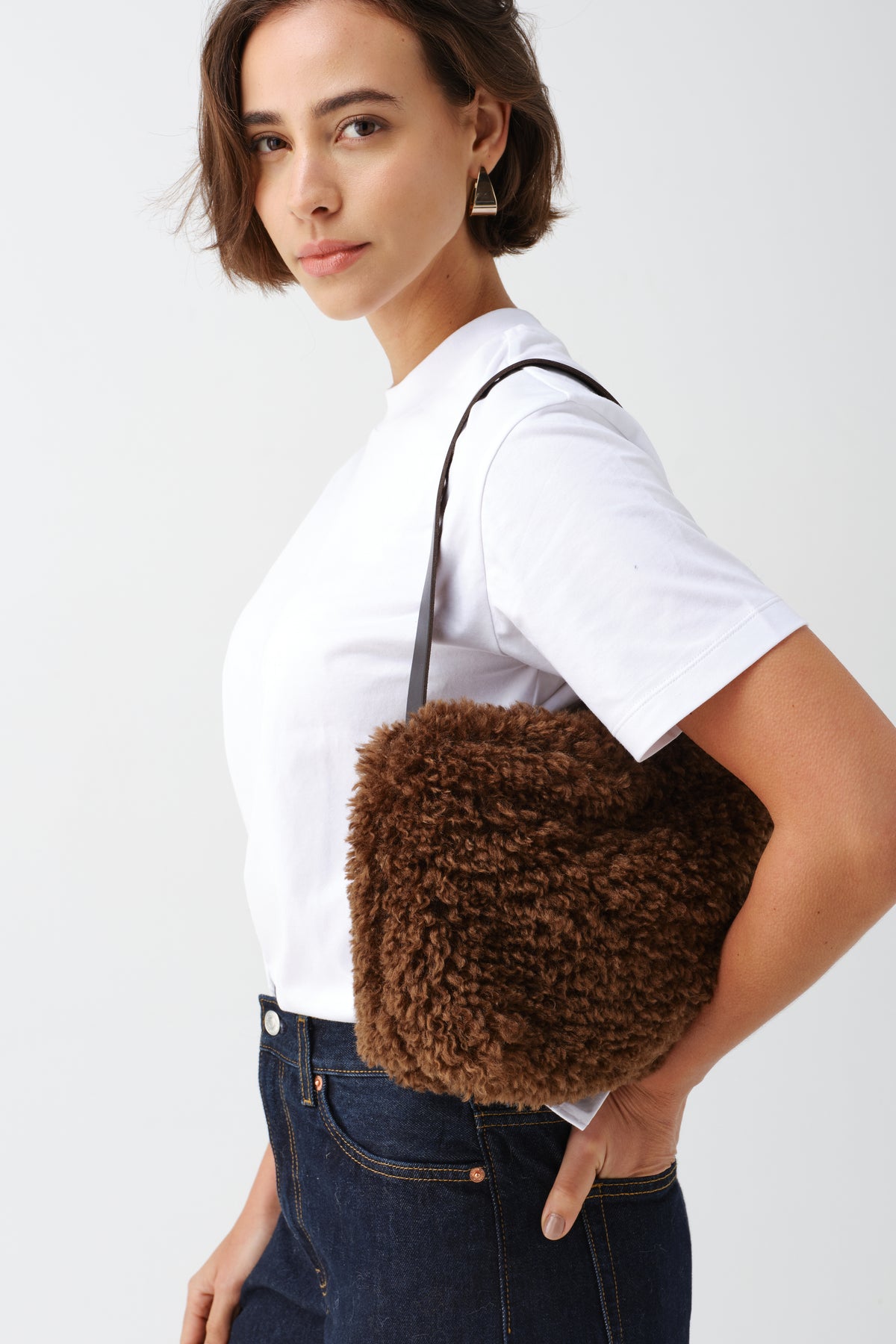 Helen Moore Faux Sheepskin Arc Bag in Chestnut