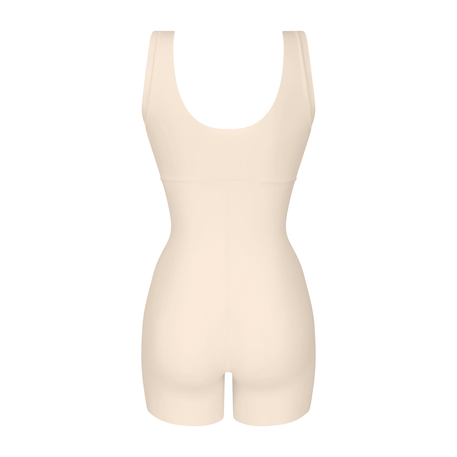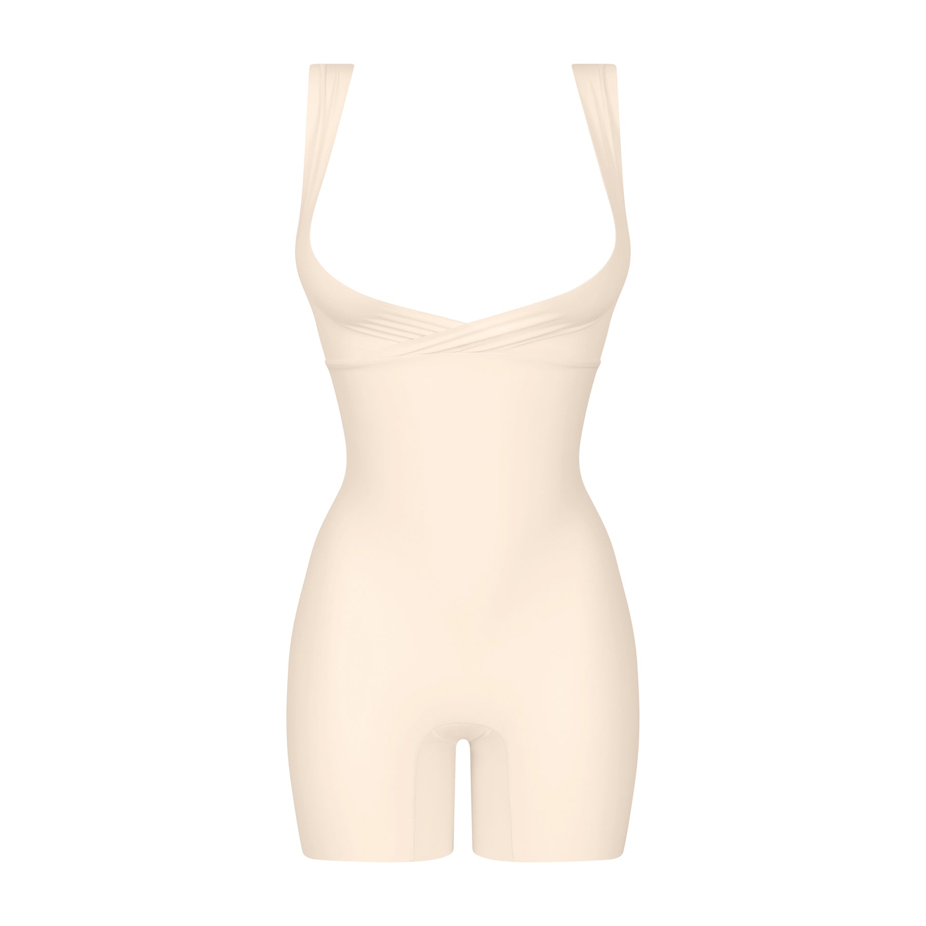 The Eclipse mid-thigh bodysuit combines innovation and elegance, smoothly redefining your curves. The body-shaping cut smooths the stomach, cinches the waist and sculpts the thighs, while offering exceptional comfort thanks to the innovative Lycra® Beauty material. It is invisible under clothing, enveloping the body like a second skin, and adapts to any bra, thanks to the open bust.